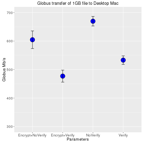 50+ transfers were performed with each set of parameters over the course of several days. Each transfer was of a single file, approx 1 GB.