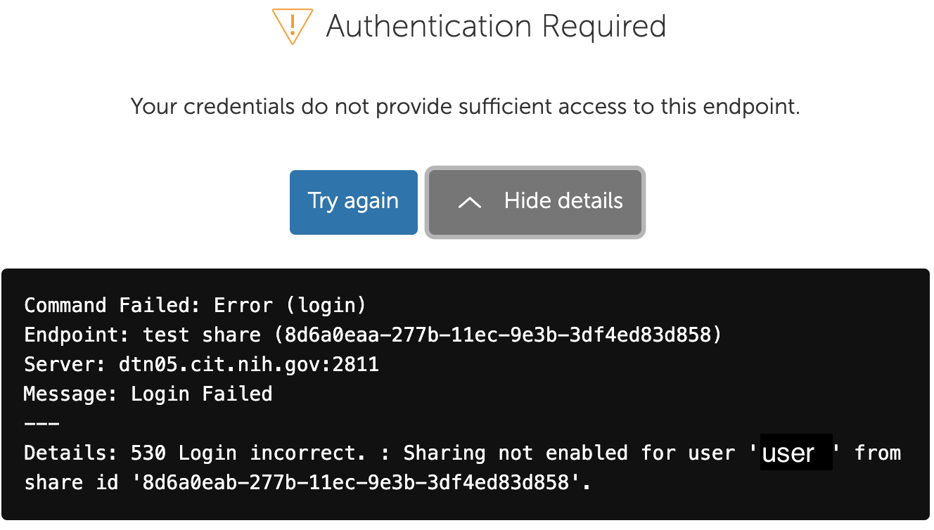 For some kinds of data transfer or sharing, you need Globus Plus. The NIH Globus subscription includes Globus Plus for all users, but you need to email staff@hpc.nih.gov to request a Globus Plus invite.
