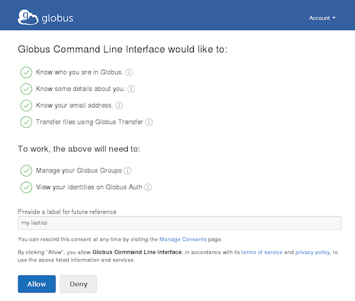 [user@helix ~$ globus login Please login to Globus here: --------------------------- https://auth.globus.org/long/globus/URL/ ---------------------------When you point a web browser to the URL that is provided, you will need to authenticate against the NIH domain, with your usual NIH login username and password. You will then see a page like the following