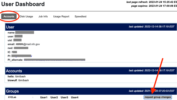 To join an existing shared data group, please reach out to the shared data group owner and request they grant you access to the shared data group via the HPC user dashboard or directly from the group change request form found here: https://hpcnihapps.cit.nih.gov/auth/dashboard/group_change.php